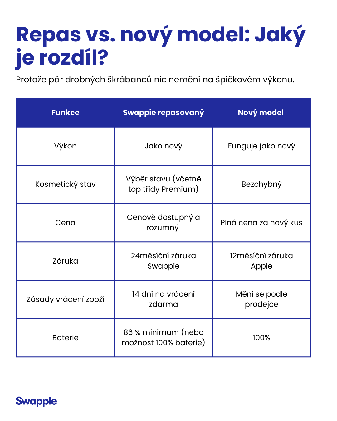 Ve světě, kde nová technika stojí celé jmění, je načase promluvit si o tom, na čem opravdu záleží: o výkonu. Ve Swappie věříme, že si každý zaslouží technologie, ze kterých může mít dobrý pocit. Proto naše iPhony fungují úplně stejně dobře jako ty úplně nové.