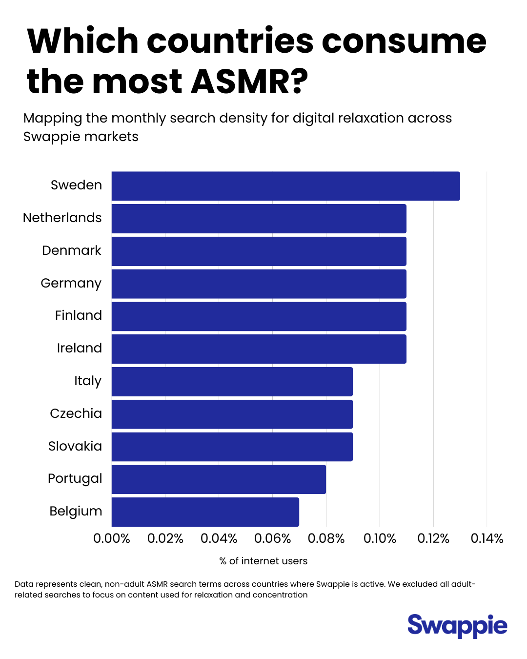 While Germany takes the crown for pure volume with over 86,000 monthly searches, the story changes when we look at interest density. It turns out our fans in Sweden are the true champions of the audio brain massage, with the highest percentage of internet users searching for ASMR.