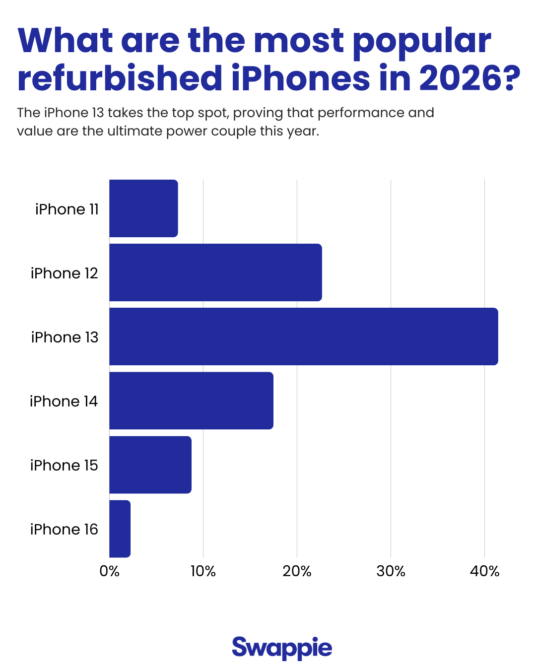 When looking at the devices our customers are adding to their baskets, one model stands head and shoulders above the rest. The iPhone 13 is currently the most popular choice among Swappie customers, and by a significant margin.