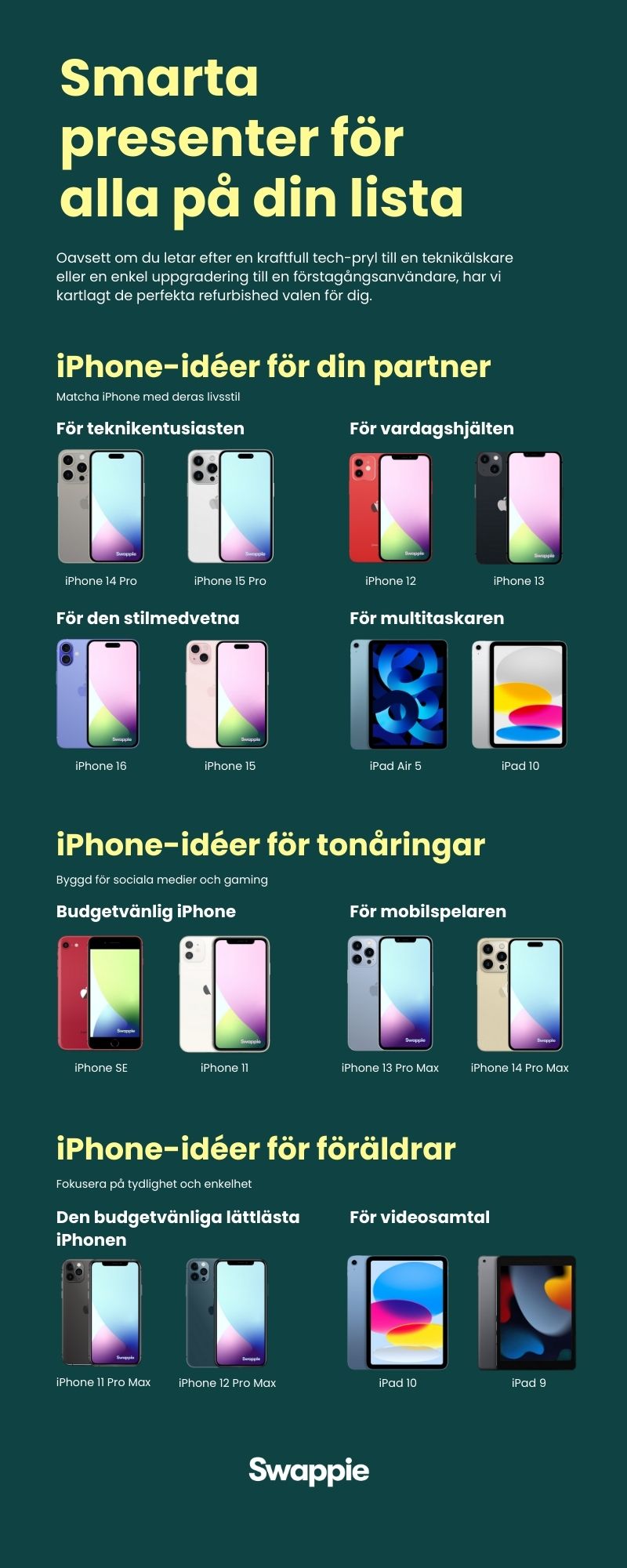 Julhandeln kan kännas överväldigande, men det behöver den inte vara. Vi tror på smart, hållbar och stressfri shopping. Oavsett om du letar efter en kraftfull tech-pryl till en teknikälskare eller en enkel uppgradering till någon som ska använda sin första mobil, så har vi dig täckt.