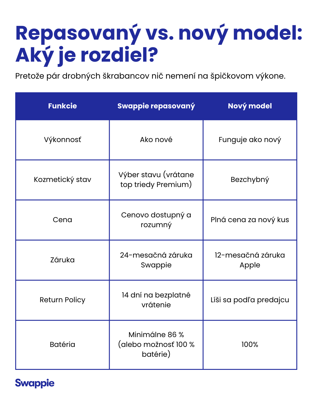 Vo svete, kde nová technika stojí majland, je načase porozprávať sa o tom, na čom skutočne záleží: o výkone. V Swappie veríme, že si každý zaslúži technológie, z ktorých môže mať dobrý pocit. Preto naše iPhony fungujú úplne rovnako dobre ako tie úplne nové.