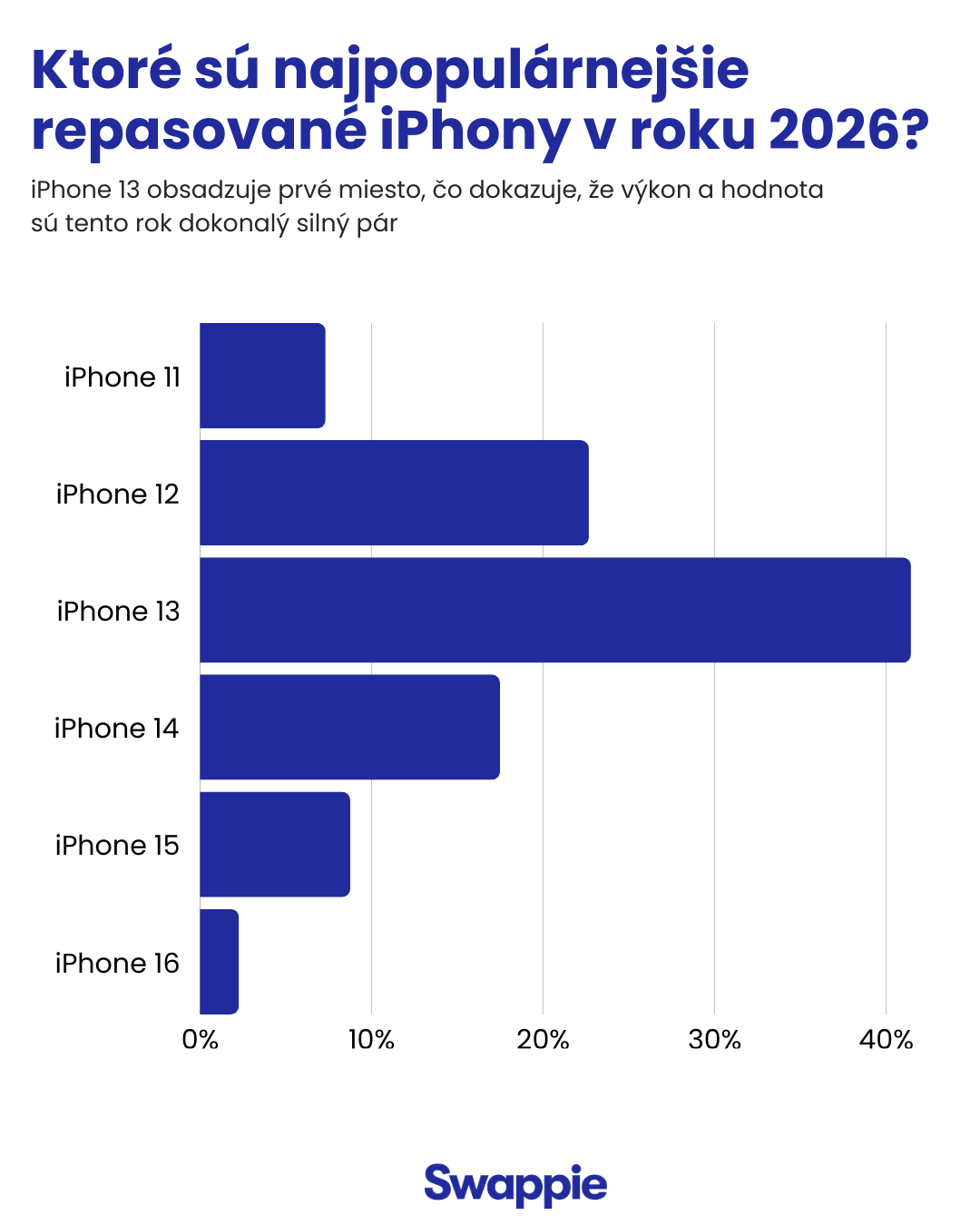 Keď sa pozrieme na zariadenia, ktoré si naši zákazníci pridávajú do košíka, jeden model vyčnieva vysoko nad ostatnými. iPhone 13 je v súčasnosti najobľúbenejšou voľbou medzi zákazníkmi Swappie, a to s výrazným náskokom.